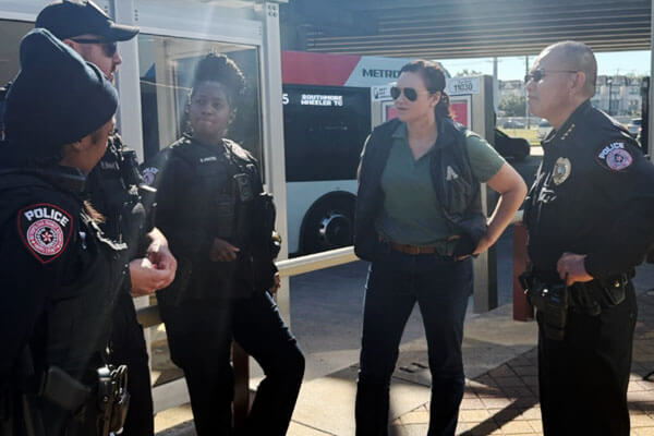 METRO police officers are licensed by the Texas Commission on Law Enforcement. Officers regulate all aspects of the METRO system by riding buses and rail lines, policing platforms and bus shelters, patrolling area roadways and facilities, and working with other law enforcement agencies to protect the entire region.